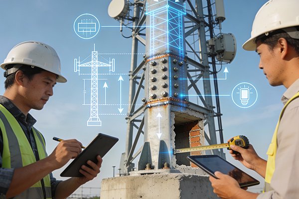 Réalisation d’études d’ingénierie complètes pour la conception de structures métalliques (pylônes) et le dimensionnement de génie civil (fondations, ferraillage, ancrages), incluant les notes de calcul de charges.